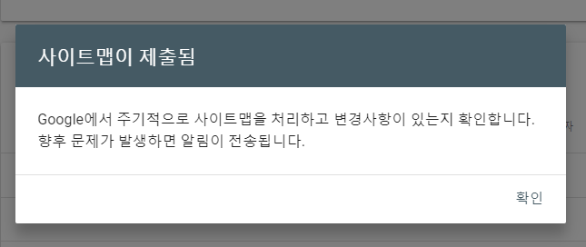 2. 사이트맵이 제출됨 하고 메세지가 나온다.